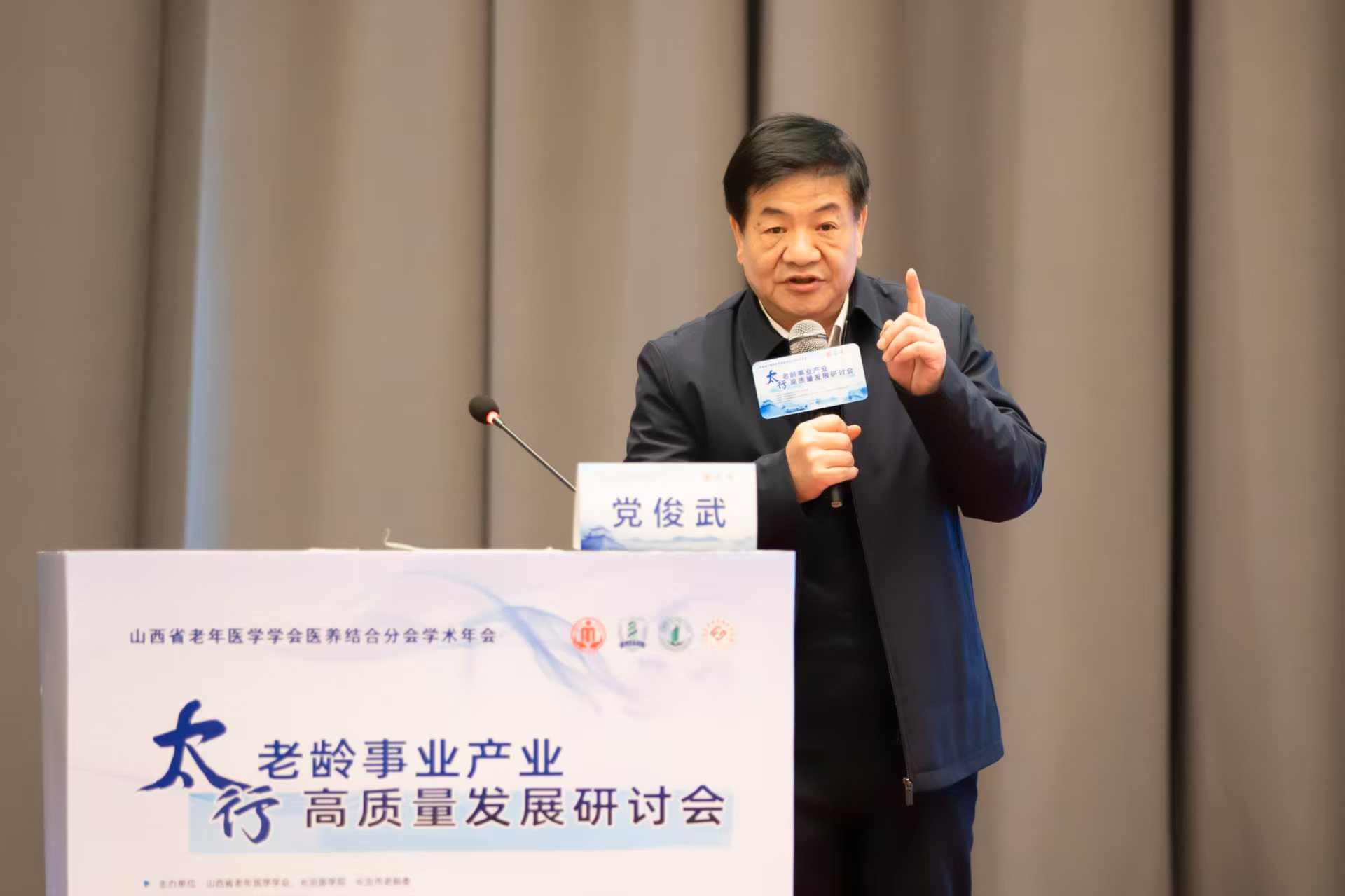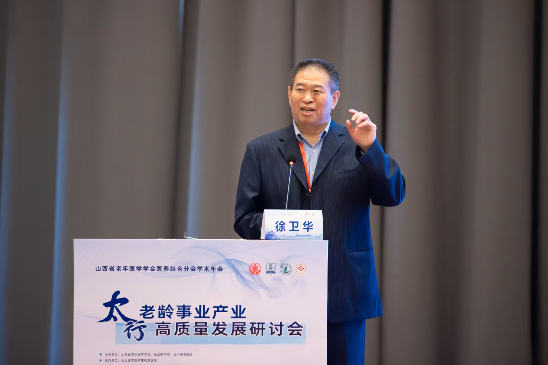长治医学院党委书记王金胜教授在致辞中代表主办方对与会嘉宾表示热烈欢迎。他强调了长治医学院作为地方医科院校的社会责任与使命,指出学校始终将服务区域老龄事业作为办学的重要方向。通过加强老年医学学科建设、共建银龄健康研究院、成立智慧康养产业学院等一系列举措,学校致力于构建“医、教、研、产”融合发展的创新生态,为区域老龄事业和产业高质量发展提供坚实的人才与科技支撑。